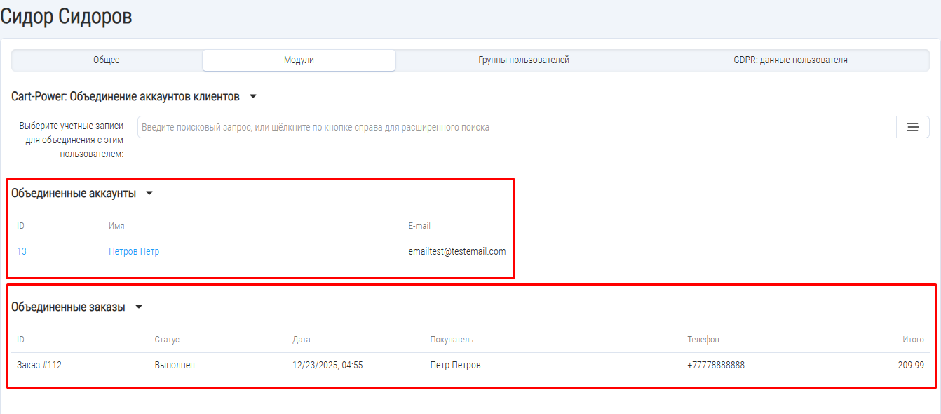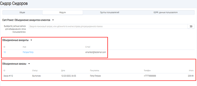 Модуль «Объединение аккаунтов клиентов» решает одну из самых частых проблем интернет-магазинов — появление дублирующих учетных записей покупателей. Теперь вы можете быстро объединить все данные из нескольких профилей в один, не теряя информацию о заказах, бонусах и группах пользователей.