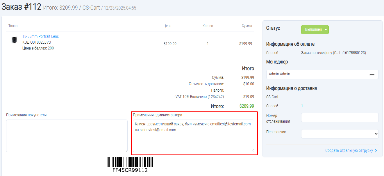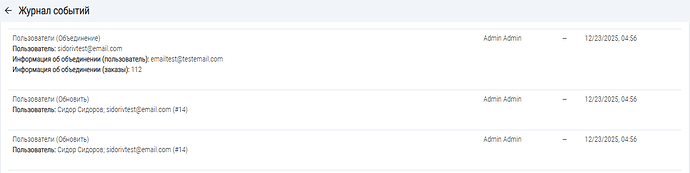 Все действия по объединению записываются в системные логи CS-Cart, а в заказах автоматически появятся комментарии с отметкой об изменении владельца.