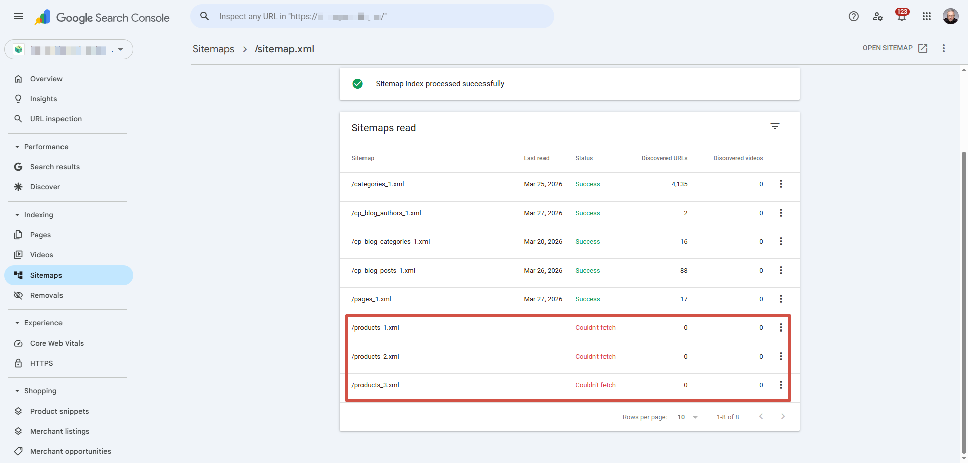 Проблема в том, что маленькие sitemap Google скачивает и краулит, а вот эти три больших sitemap не может. Яндекс менее требователен, он съедает все.