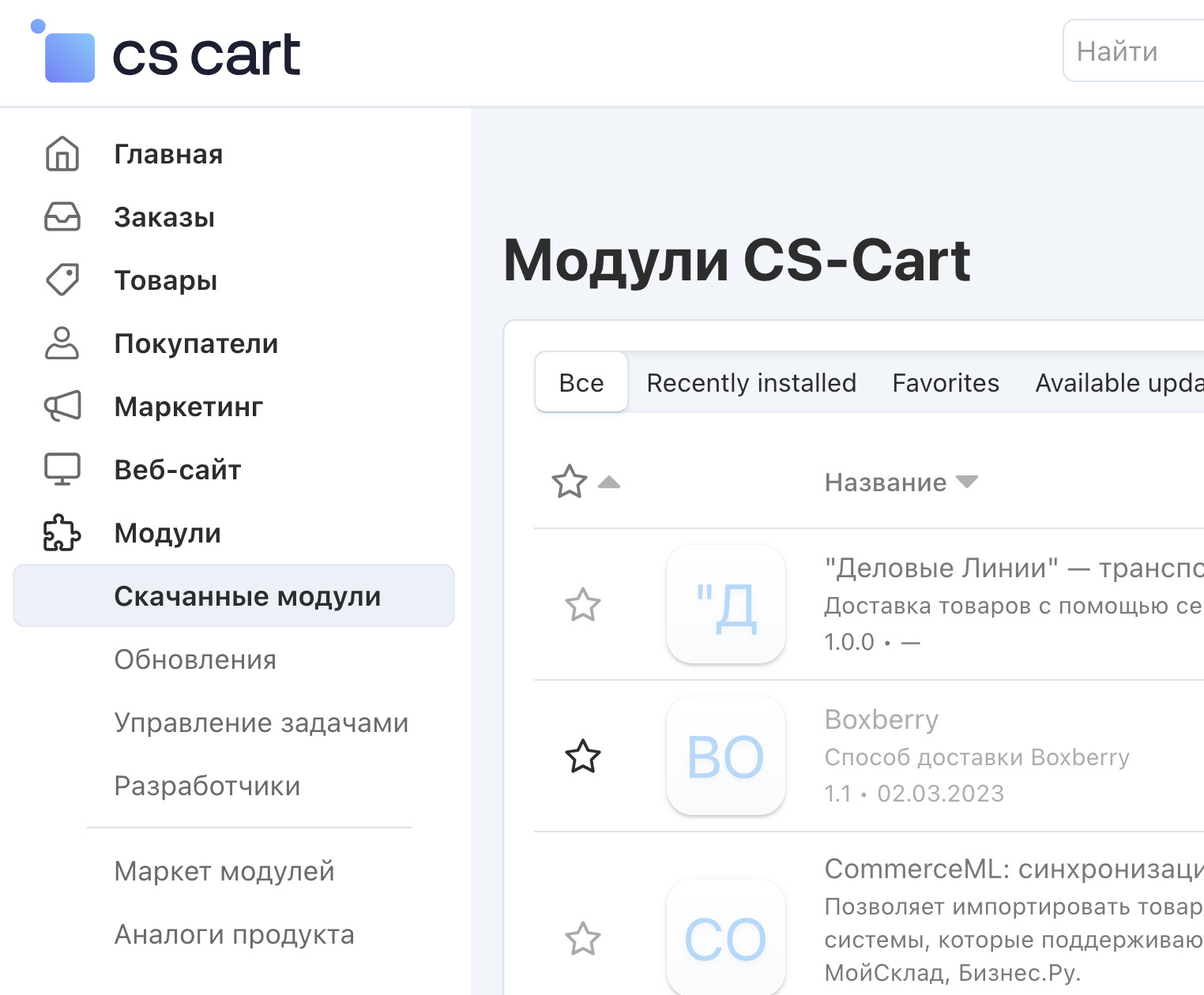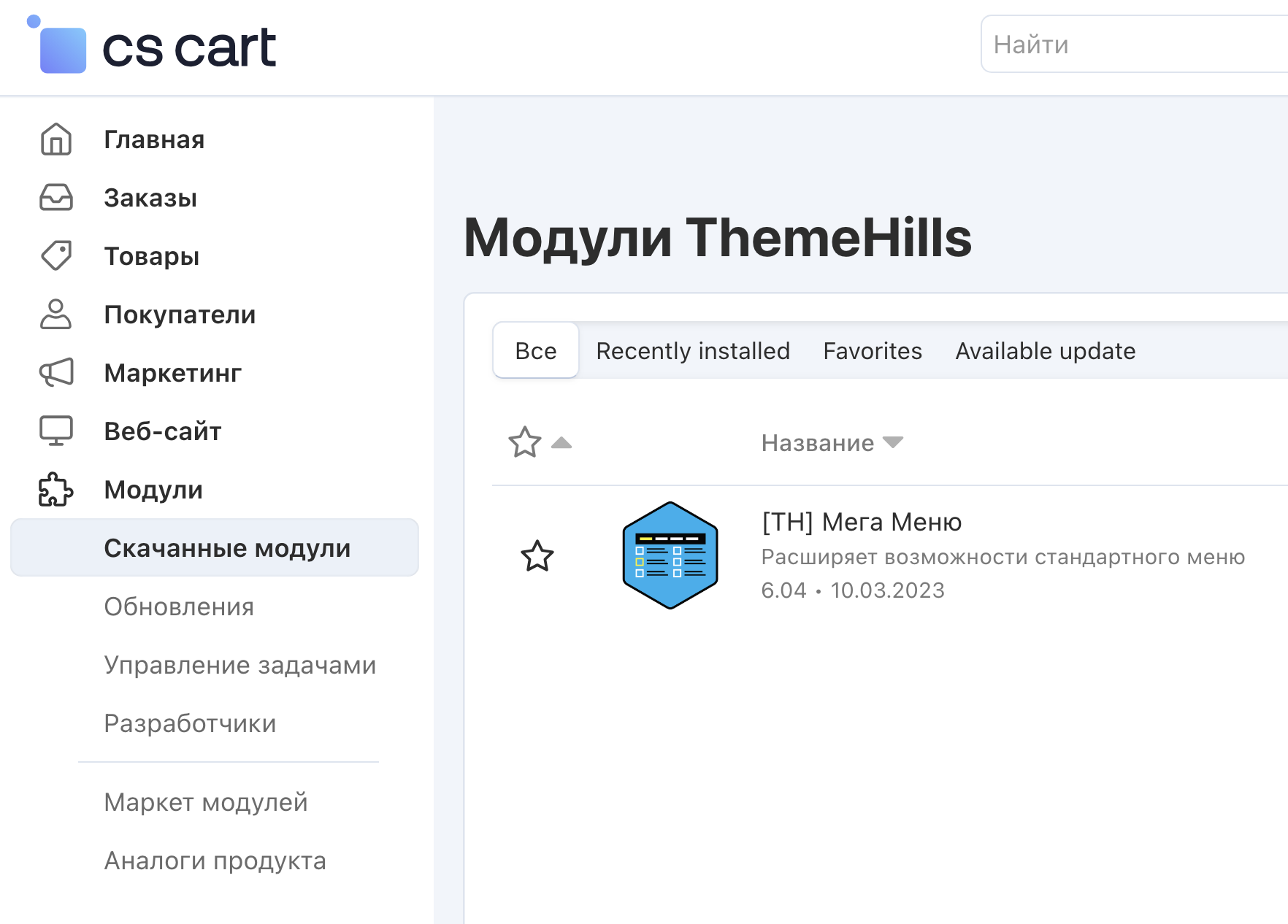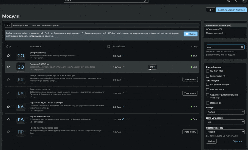 Если мы переходим в админке на страницу Модули / Скачанные модули - тут все понятно. Но если мы пойдем в Модули /Разработчики / CS-Cart (например) - то это опять же будет не страница модулей этого разработчика, а страница всех модулей с отбором поиска по разработчику. В результате меню сворачивается, заголовок общий, то есть глазу ничто не говорит, что это список с отбором. Как-то была такая страничка во вкладке открыта, долго открыта, больше недели, я и забыл что там отбор был, и чуть в панику не впал, когда увидел, что в списке нет нужного мне модуля.