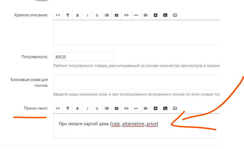 скорее всего будет сильно лечге вывести переменную в поле “Промо-текст” товара. Скрин 2
