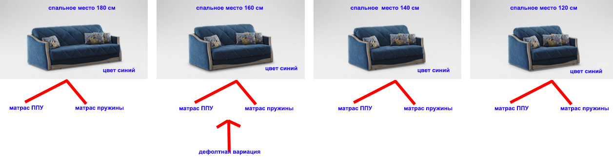 Ждал такого ответа. Тогда продолжим пример. Клиент задает фильтр хочу диван ширина спального места не более 140 см с матрасом пружинный блок. Что он увидит в результате? Я так понимаю он увидит карточку с дефолтной вариацией где будет изображен диван шириной спального места 160 и матрасом ППУ и при клике он попадет в карточку дивана 160 с матрасом ППУ. Т.е. ничего общего с тем что он искал. По факту это точно также как это работает сейчас, только сейчас вместо дефолтной вариации показывается основной товар.