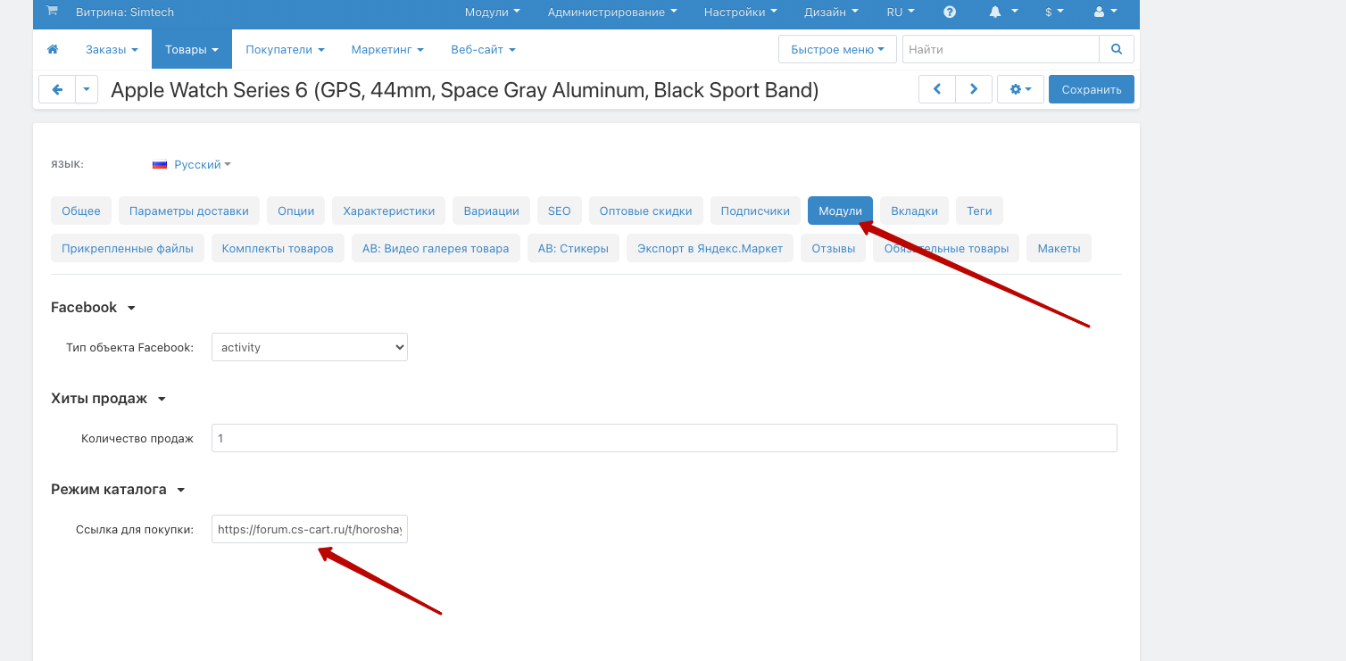 протестировал модуль, там нету возможности указать свою ссылку в карточке товара, не подходит он.