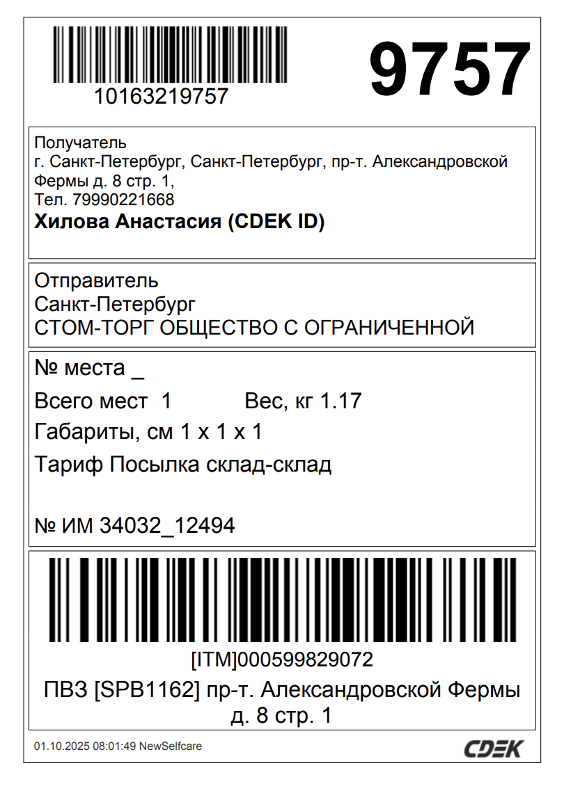 СДЭК в некоторых заказах при всех заполненных габаритах у товаров в накладную передает 1/1/1