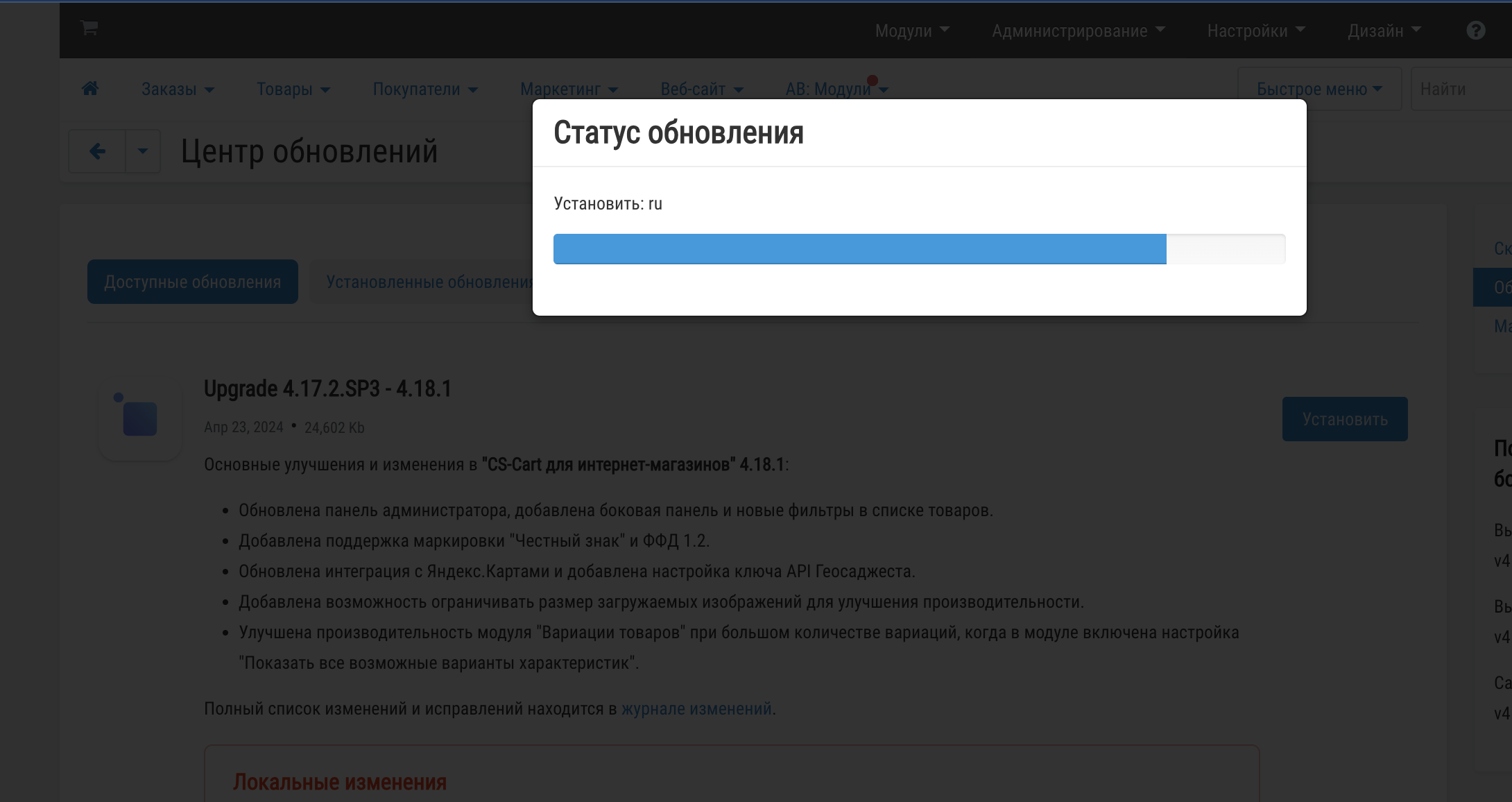 Решил копию магазина обновить, и так уже минут 30-40 висит