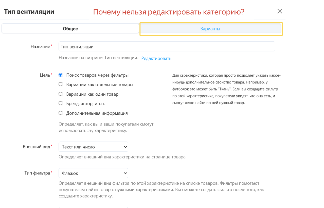 Подскажите пожалуйста, не нашел возможности изменить категорию или добавить новую к имеющейся характеристике?