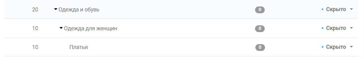 Добавил продавец платье. И выбрал подкатегорию платья. Но не выбрал “одежда для женщин” и “одежда и обувь”. В циферках это будет выглядеть так: одежда и обувь 0, одежда для женщин 0. платья 1. т.е. автоматически это отобразится (из-за галочки в админке в разделе общее) только на витрине. В админке останется 0 товаров в главной категории.