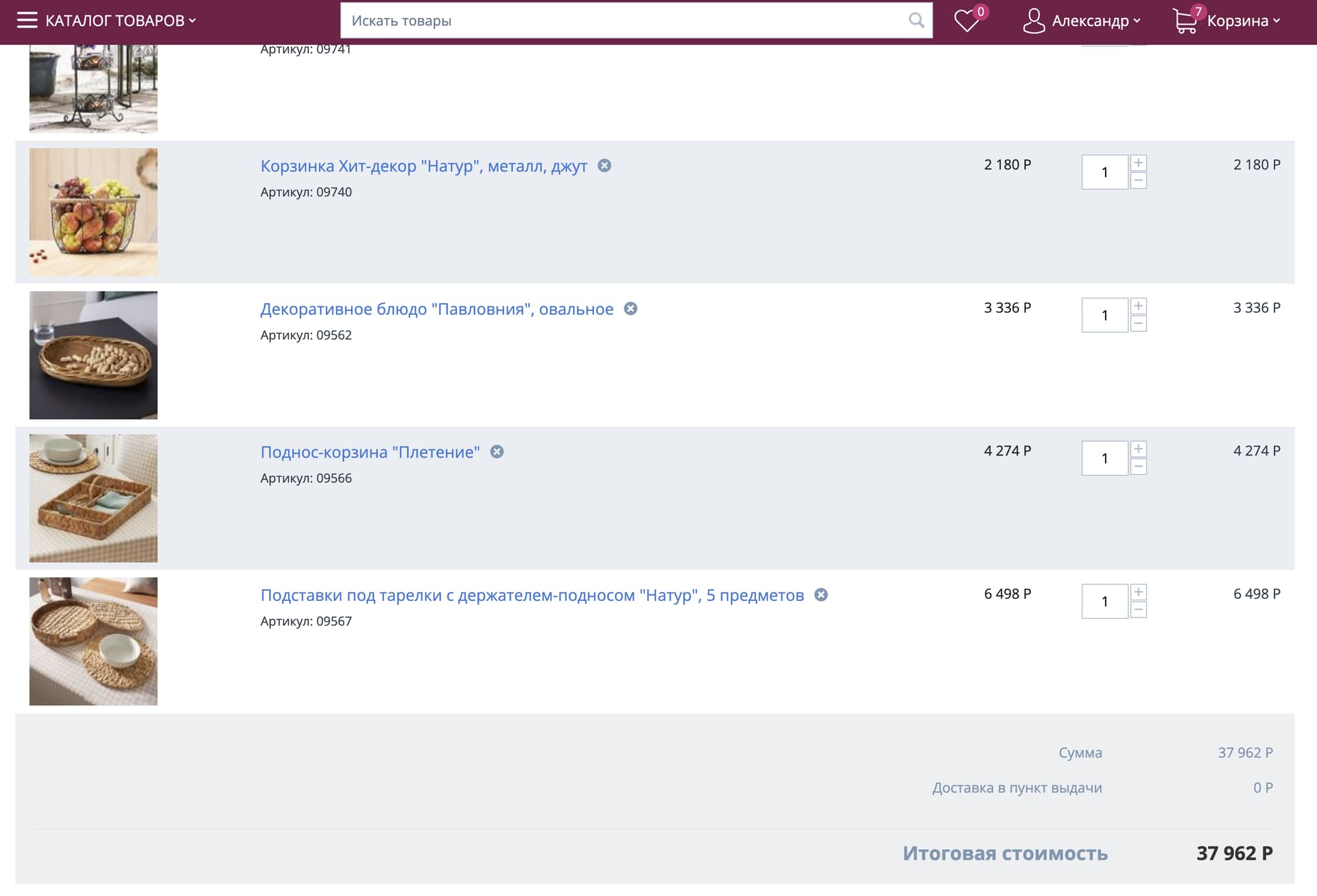 Вобщем, итог сейчас такой. В корзине на фронте 7 товаров: