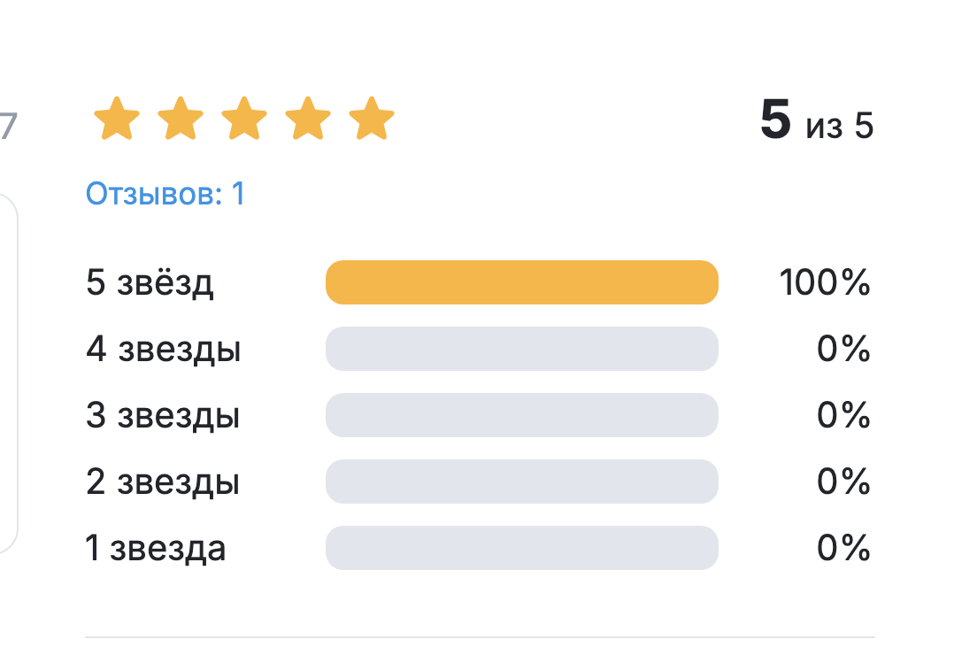 Добавил еще один отзыв от себя теперь так, всего 1 отзыв с 4 звездами и 2 отзыва с 5 звездами.
