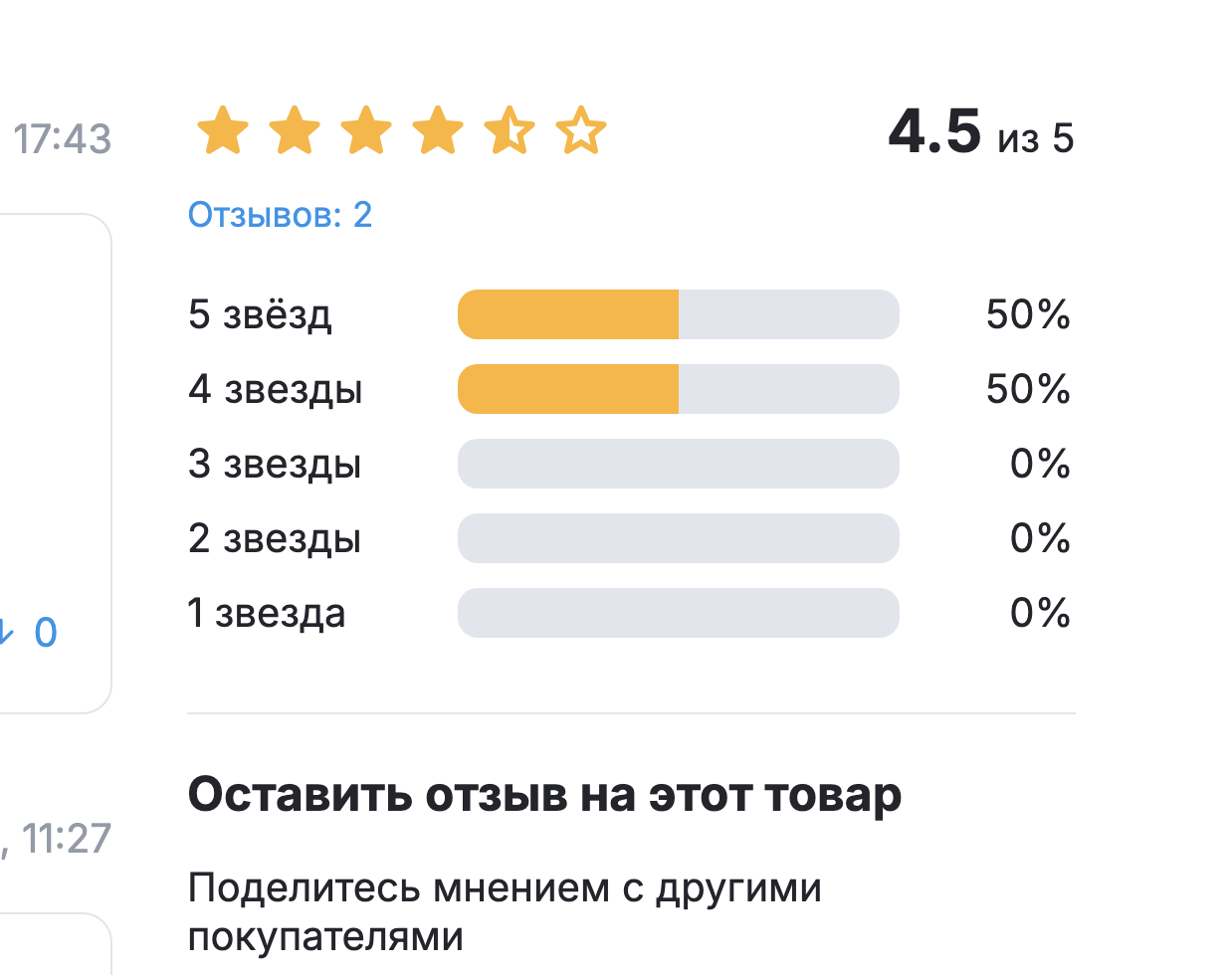 Итого = 50% - 50% не понятно, почему второй отзыв снижает рейтинг первой оценки?