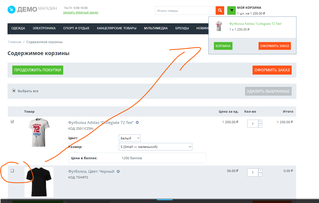 Модуль добавляет возможность оплачивать только выбранные товары в корзине (по аналогии с популярными маркетплейсами). . Покупатели могут сохранять в корзину сколько угодно товаров, а оплачивать только те, которые нужны именно сейчас