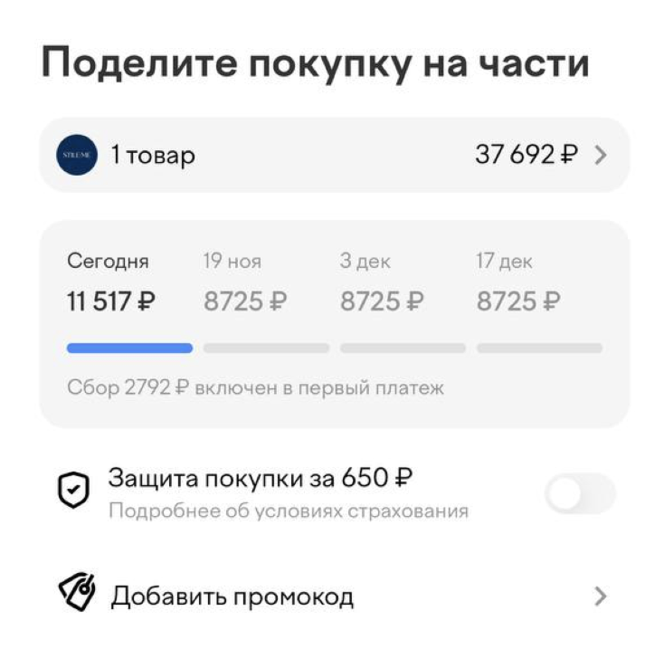 Долями теперь берет сервисный сбор который засовывает в первый платеж. В итоге пользователь видит суммы отличные от того что мы показываем на картчоке товара и чекауте и думает что его обманывабт. У Долями теперь виджет появился – видимо вывод на карточке товара и чекауте расчетов надо делать через виджет - ну то есть просто вызывать виджет а не кодить все руками как сделано у нас со сплитом.