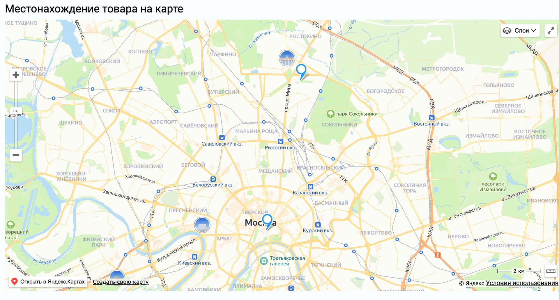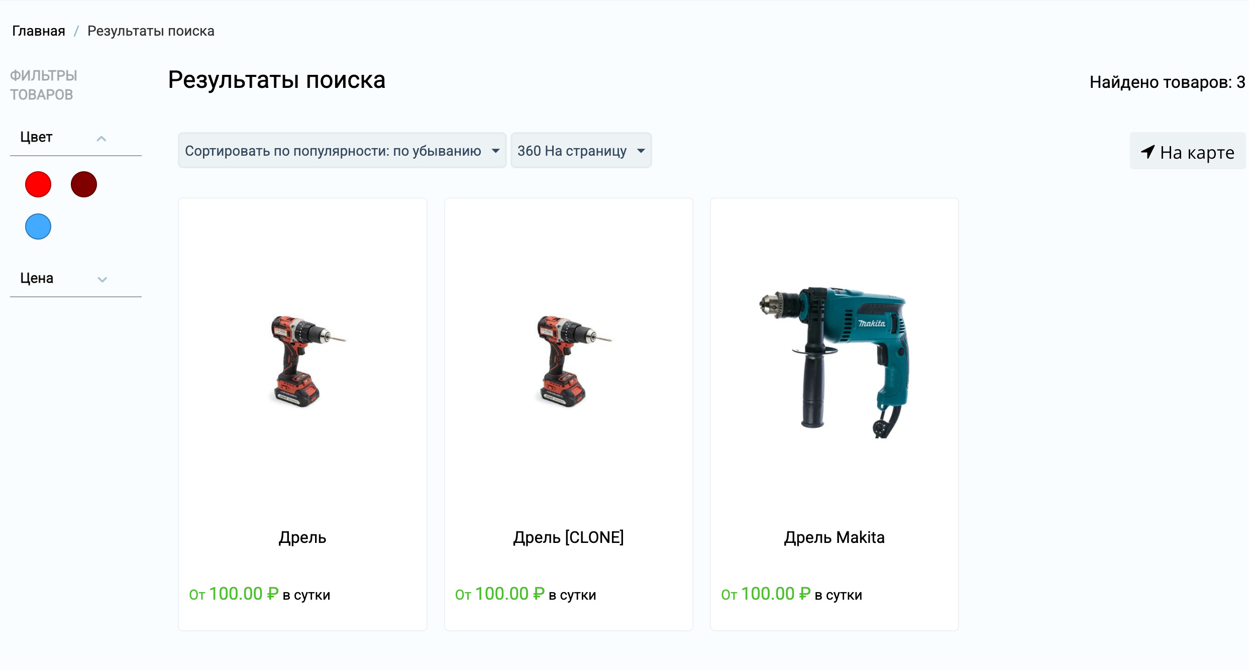 - Карта с объявлениями. Каждому товару можно прикрепить гео-метку.