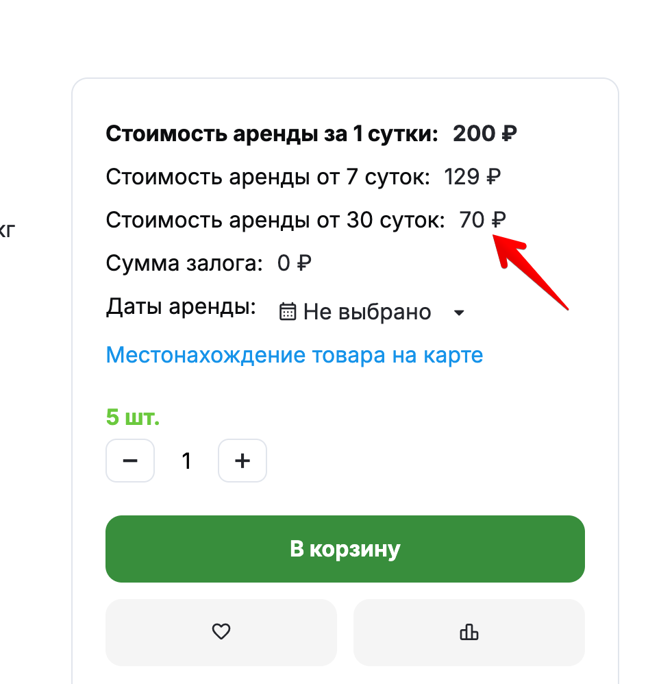 Также добавили опцию - сколько дней после и до аренды будет заблокирован товар (например если нужно подготовить помещение или автомобиль к аренде или после аренды).