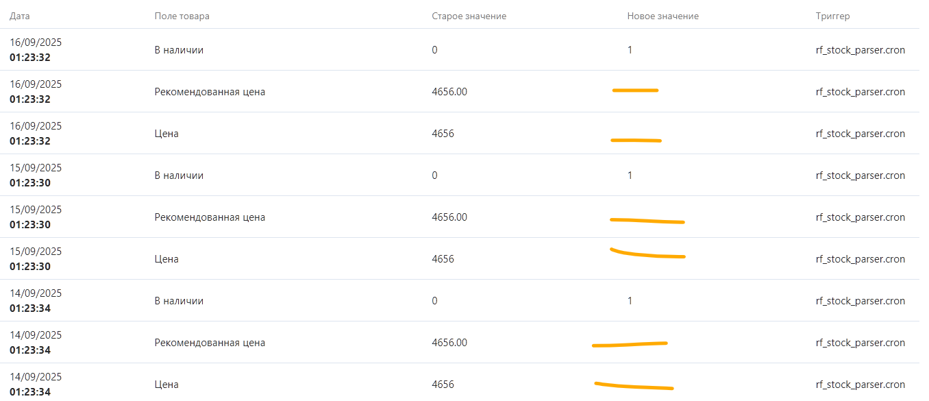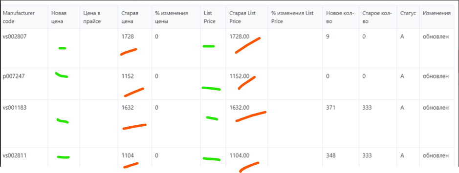 Модуль в журнале фиксирует Старые цены (скрин 1) если цена не меняется и даже если в импорте у него вообще не настроено обновление цен (скрин 2).