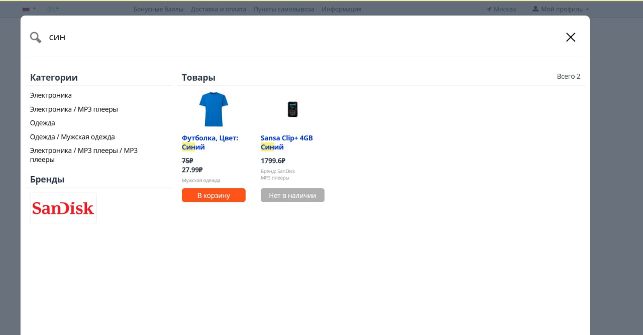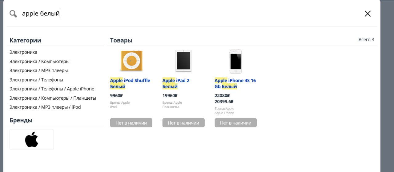 Поэтому мы сделали эту доработку - в каталоге все работает на основе ядра, попап выдача работает через наш умный поиск.