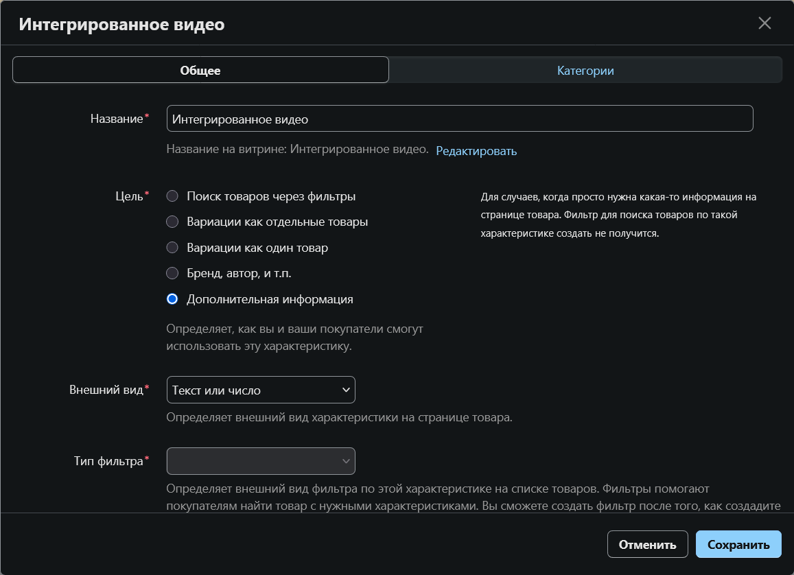 а в свойствах характеристики цель “Дополнительная информация”, я меняю ее на “Поиск товаров четез фильтр”, делаю выгрузку и после выгрузки свойтво опять становится “Дополнительная информация”.