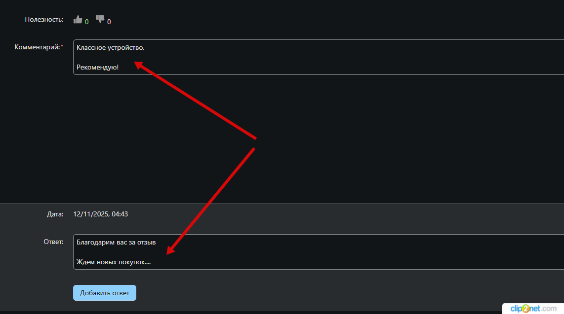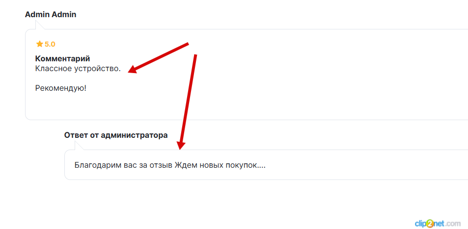 Я написал отзыв и сохранил, в админ панели выглядит так