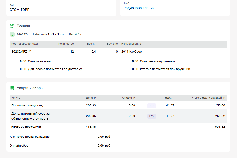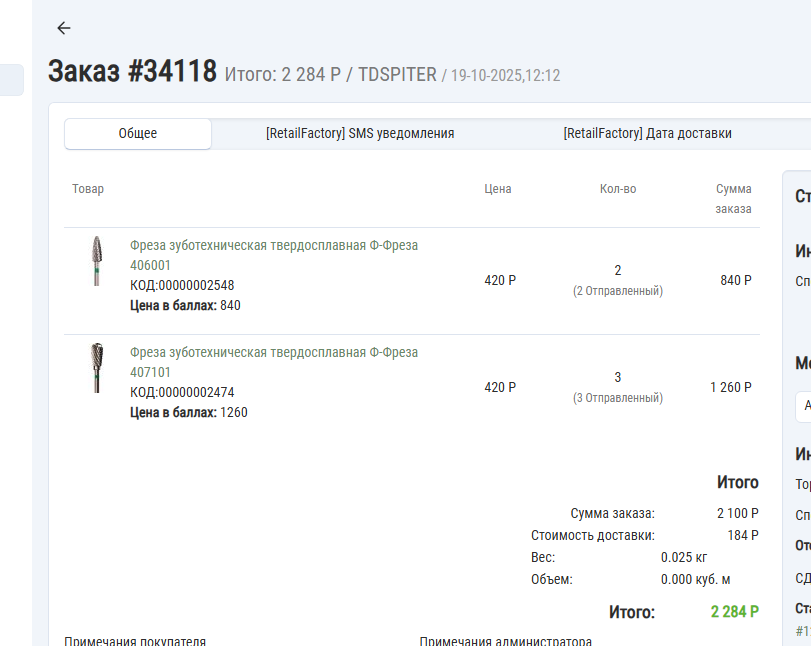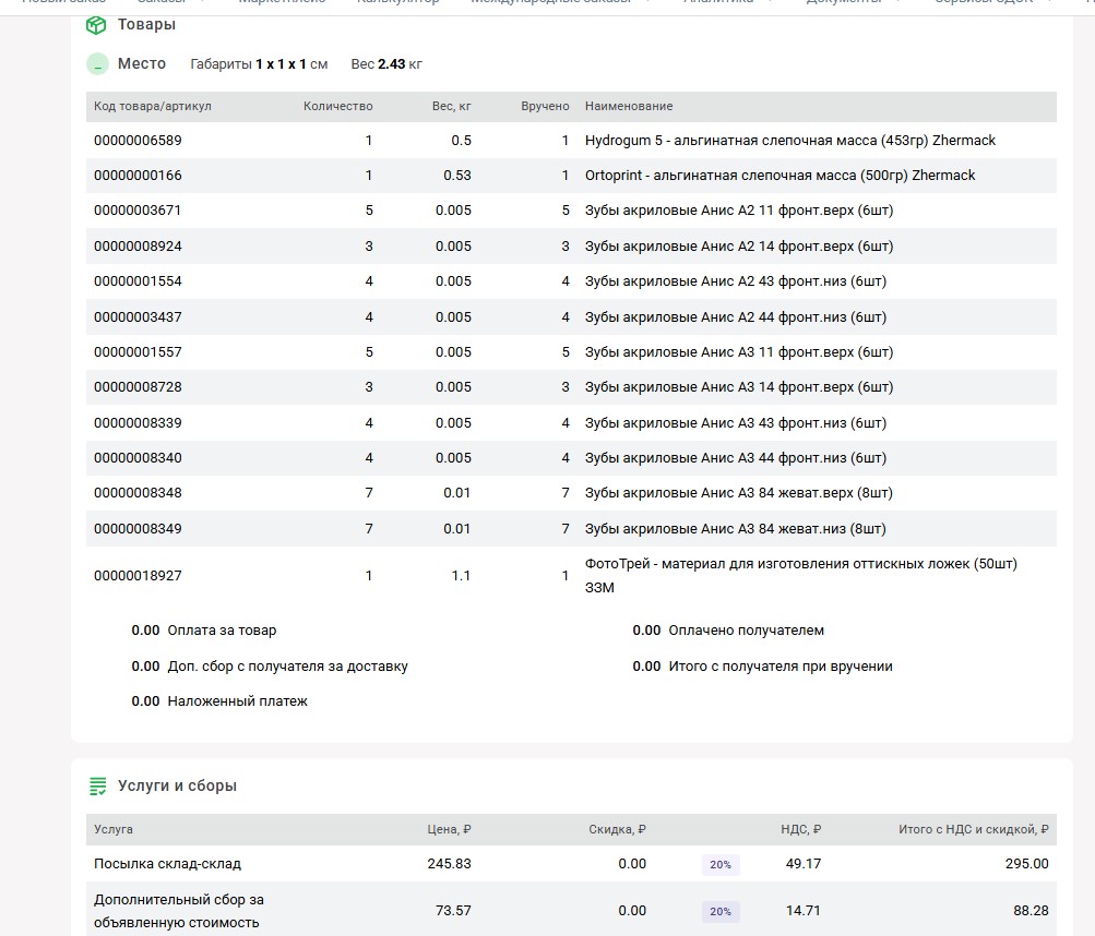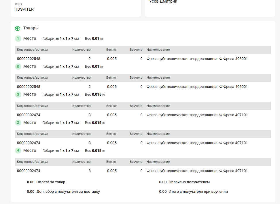 Далее эти заказы скопировал в админке, поменял себя в получателе, сделал отгрузку в сдэк, проверяю в лк - и супер, все передается отлично, на каждый товар - свое место с размерами, весом, количеством, описание