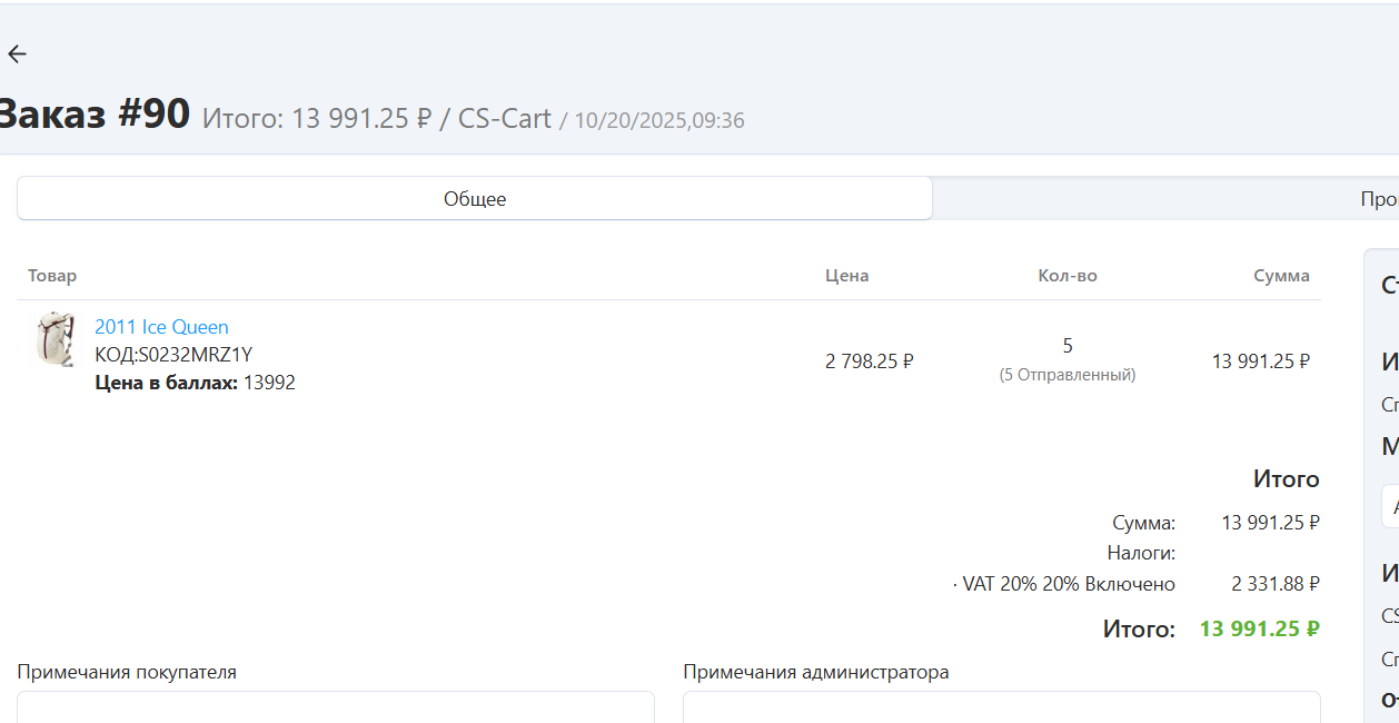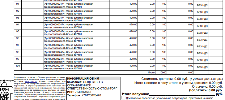 Итог заказ на 2 позиции в сдек прилетает с 6.
