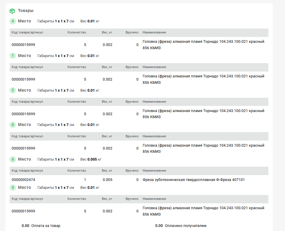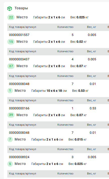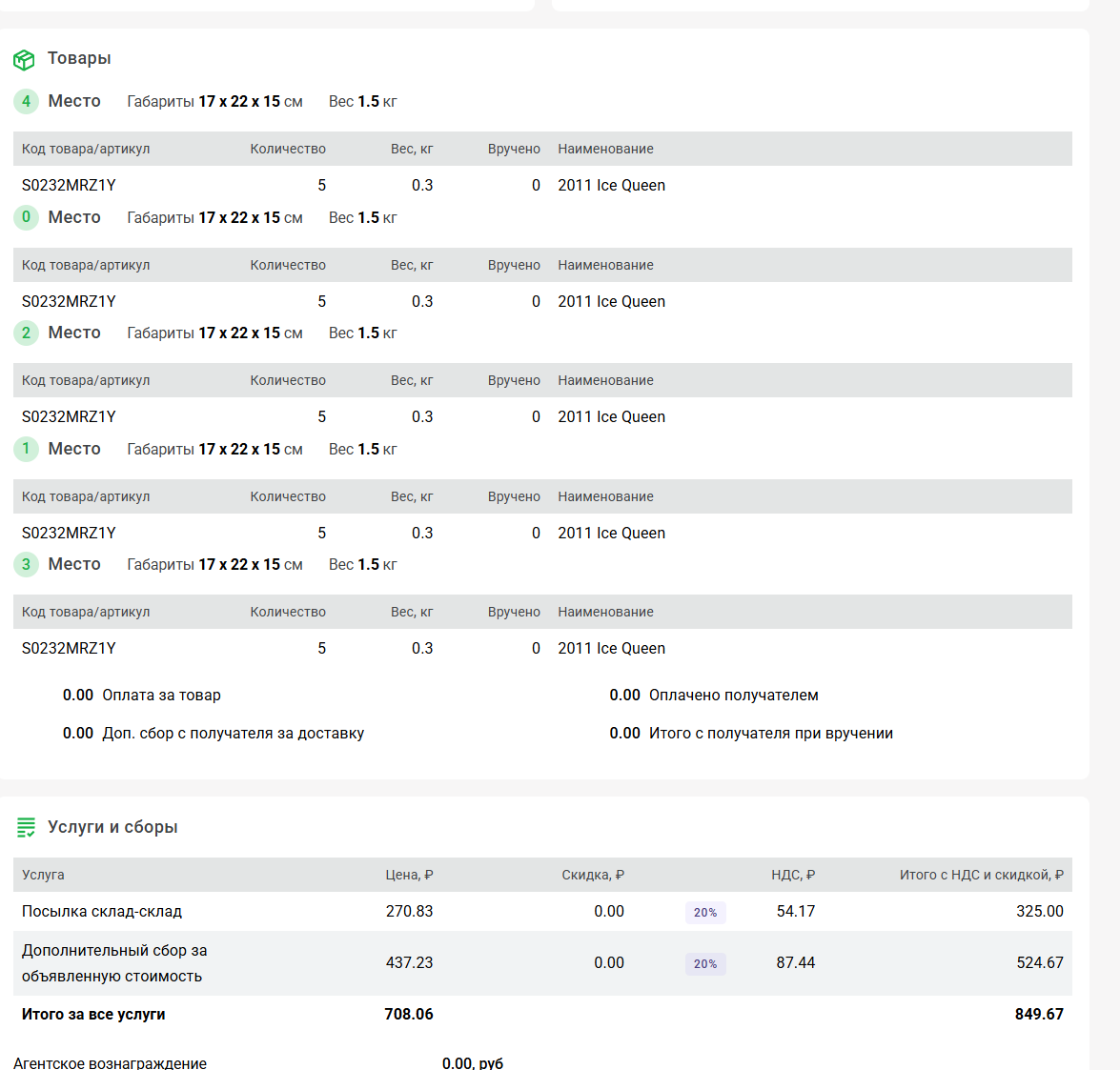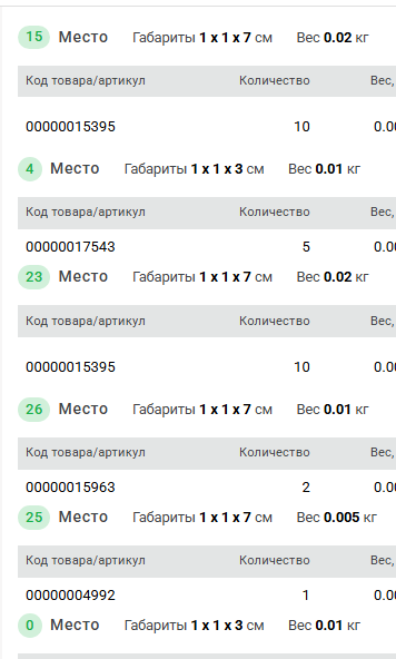 Собственно, в сдэк ушло 5 мест по 5 шт вместо 1 места на 5 шт