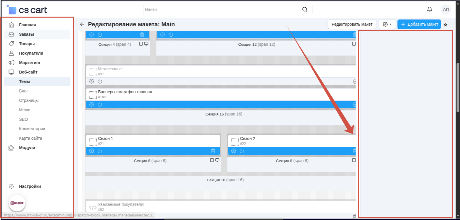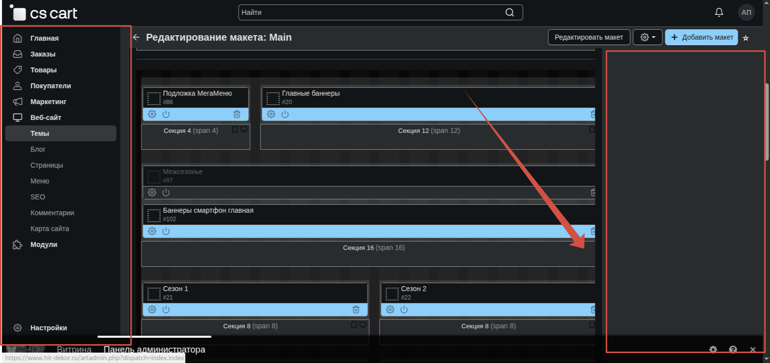 При этом у нас статичное меню слева, которое не нужно при работе, и еще более широкая и короткая колонка справа, в которой практически всегда два-три небольших блока, часто просто информационных или с одной-двумя ссылками/кнопками, а все остальное место пропадает.