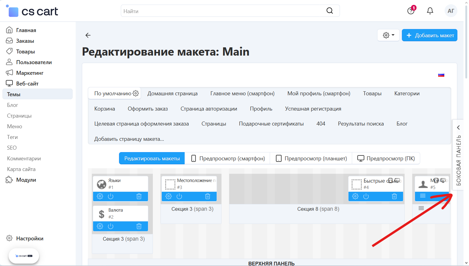 Панель справа (Боковая панель) убирается проще, точнее механизм уже заложен для меньших экранов. Минимальная правка стиля (можно через модуль мои изменения) и у вас также будет возможность скрывать данную панель и на десктопах