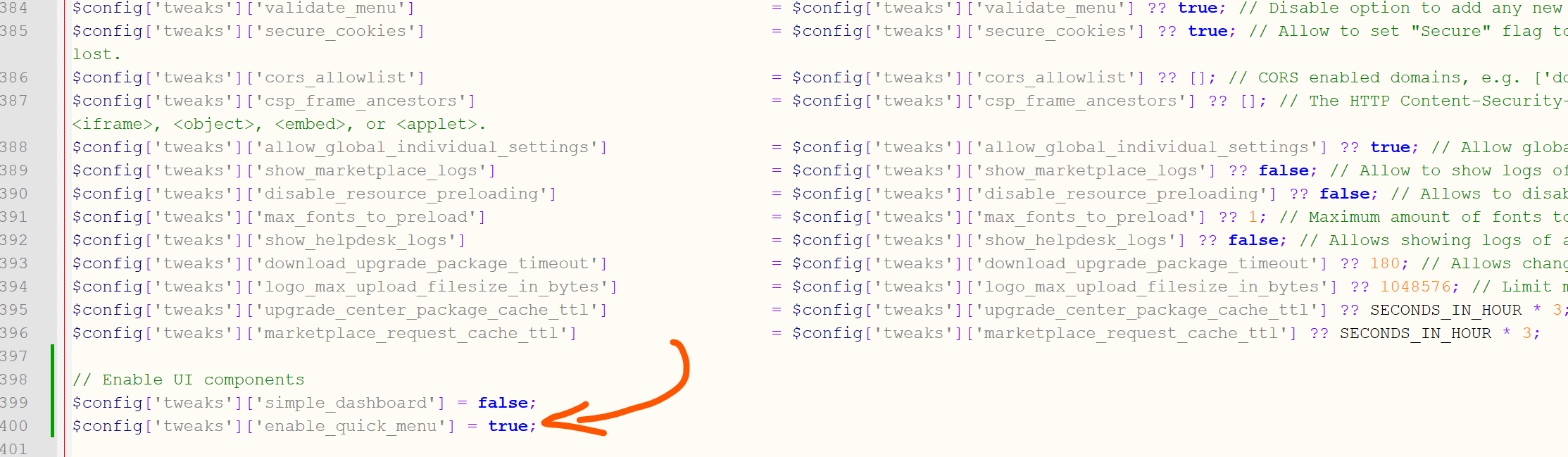 Этот твик не срабатывает $config[‘enable_quick_menu’] = true;
