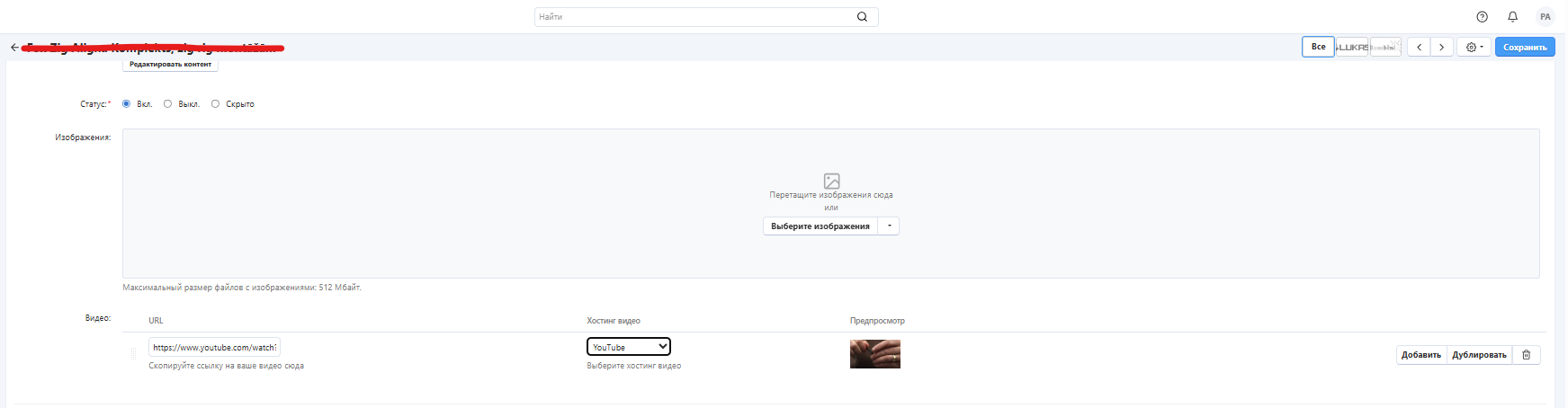 При сохранении добавленного видео, оно не сохраняется и товар остаётся без видео. Что не так может быть?