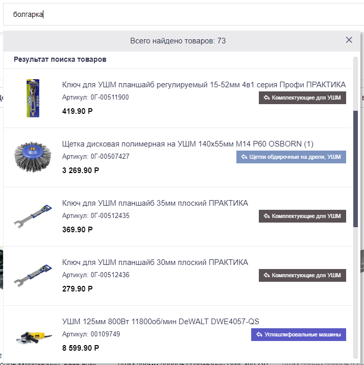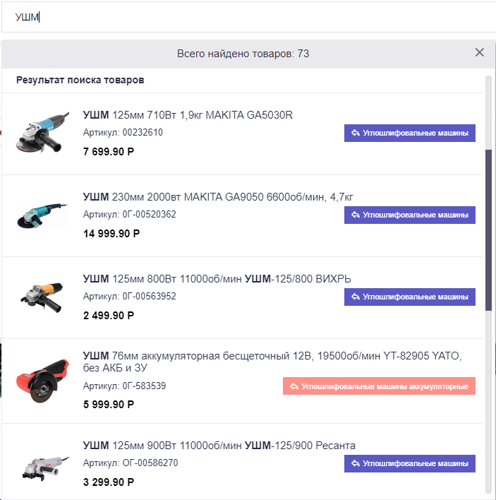 И есть любой синоним, например “Болгарка” который так же использует запрос “УШМ”.